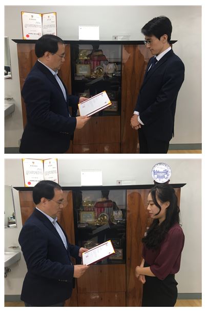 [일민국제관계연구원 2018년 상반기 인턴 수료식] 일민국제관계연구원에서 2018년 상반기 동안 성실히 근무한 학부생 인턴들의 수료식이 2018년 8월 21일 (화요일)에 거행되었습니다. 인턴십을 수료한 학생들은 연구원장 명의의 수료증을 받았습니다. [인턴 수료생 명단] o 이준석 (중어중문학과) o 신민주 (노어노문학과) o 손효동 (경제학과) o 권민성 (정치외교학과) 이상 총 4명. |