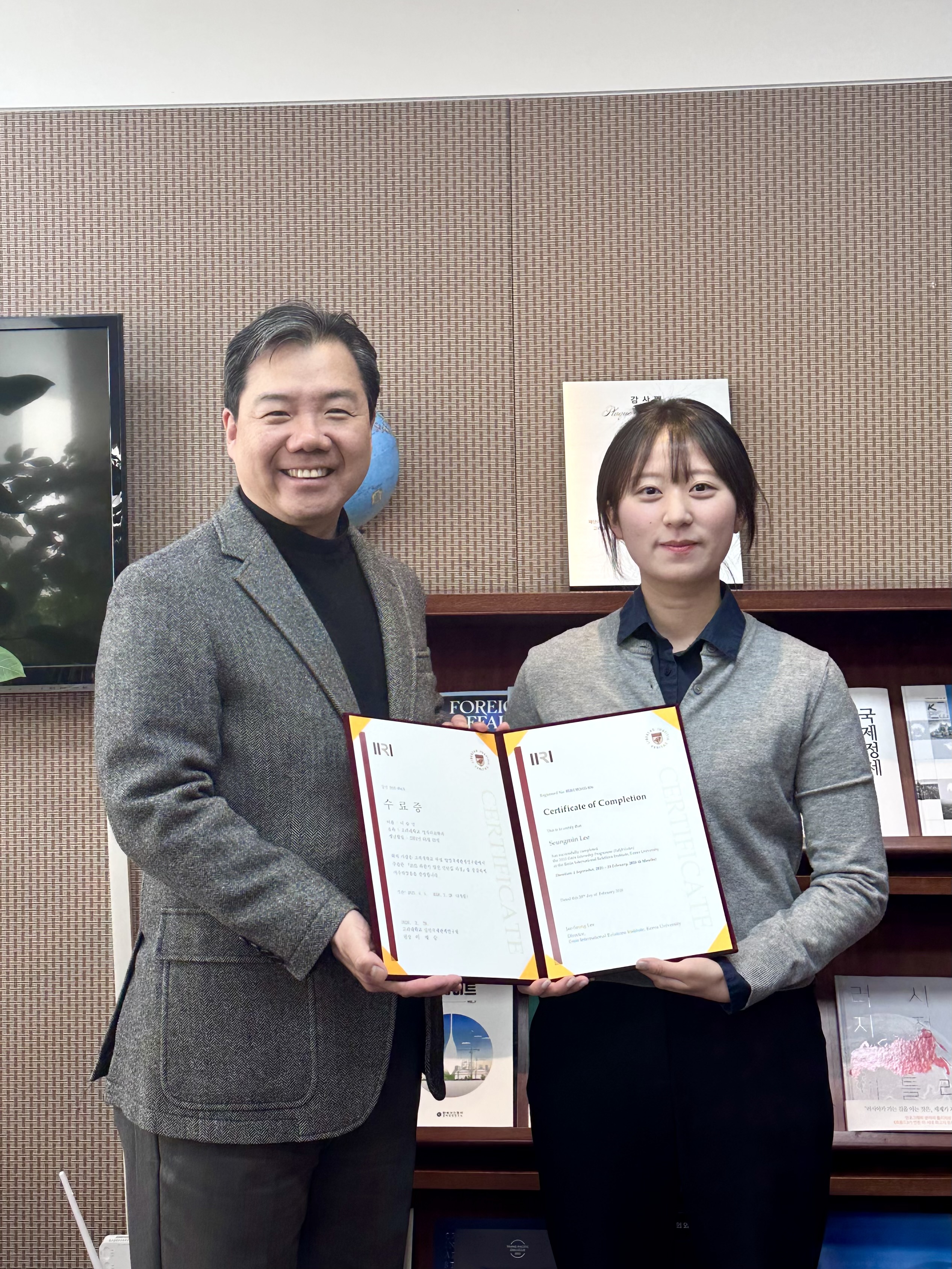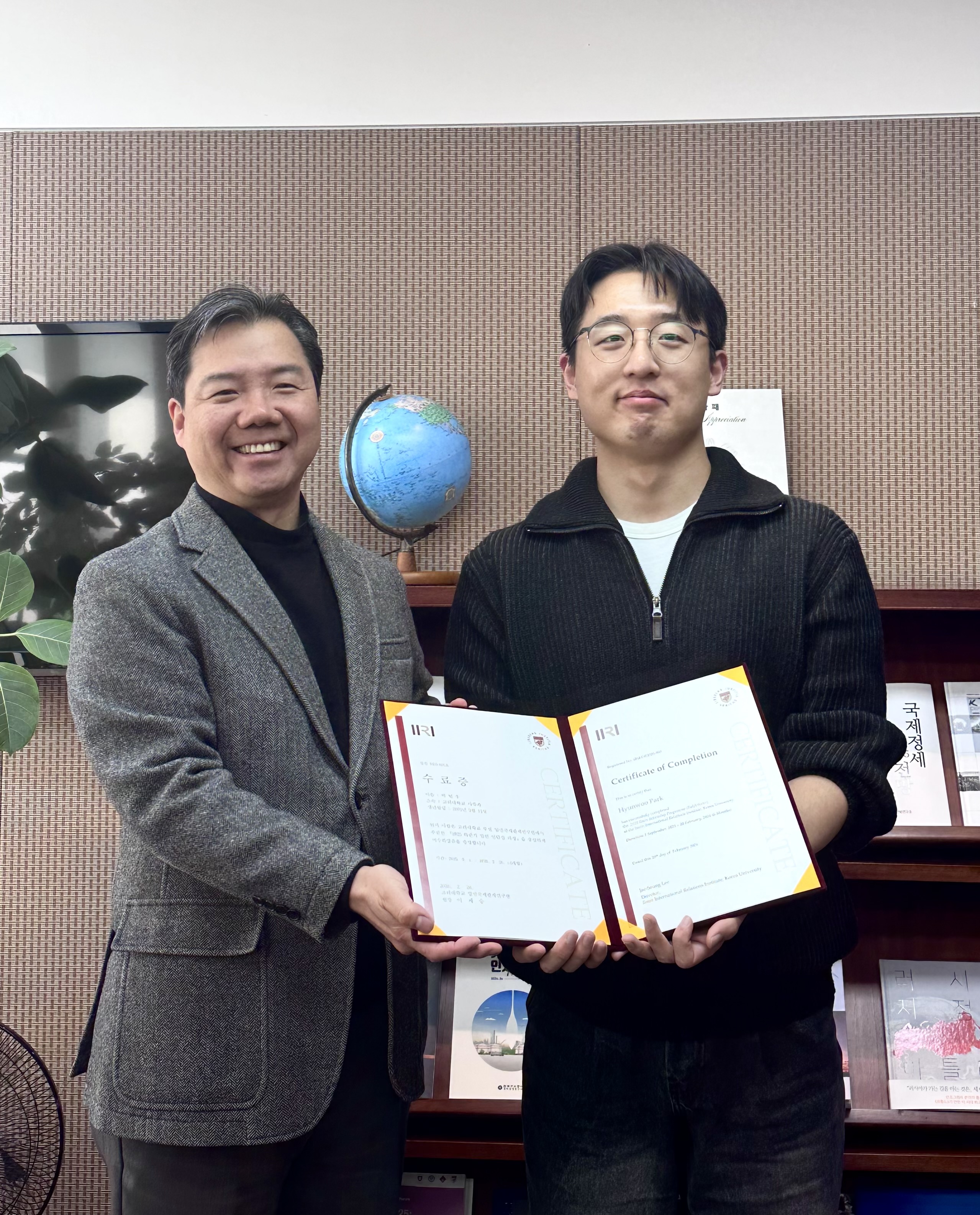 일민국제관계연구원에서 2025년 하반기 동안 성실히 근무한 학부생 인턴들의 수료식이 거행되었습니다. 수료한 학생들은 연구원장 명의의 수료증을 받았습니다.